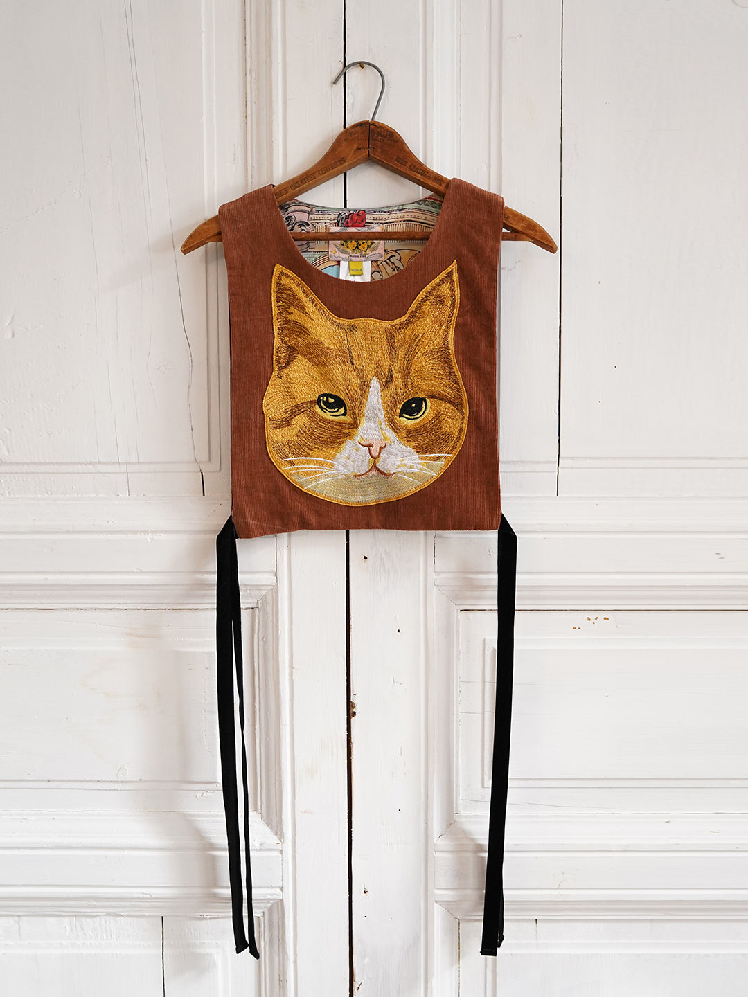 Unlogical Poem Retro-style Cat Embroidery Smock
