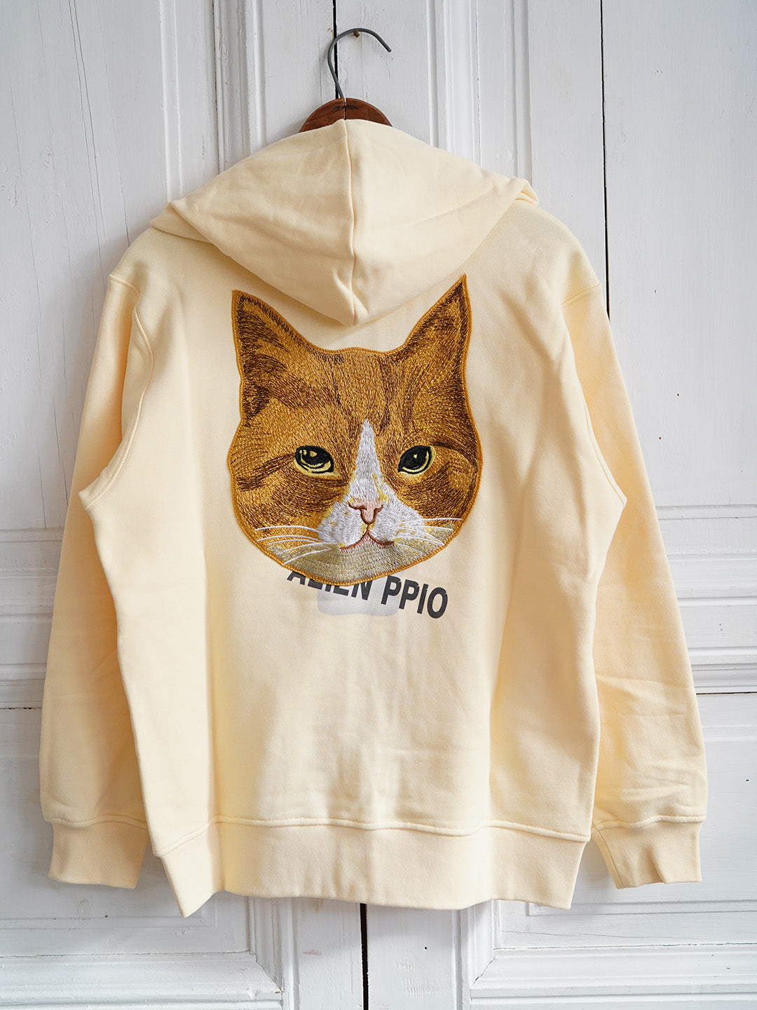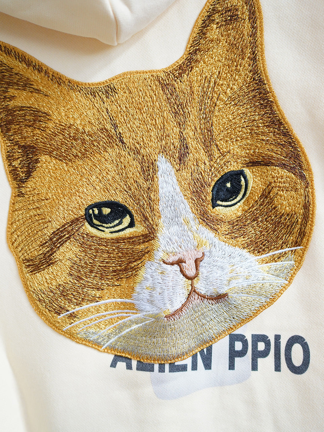 Unlogical Poem Cat Embroidery Zip-up Cotton Hoodie