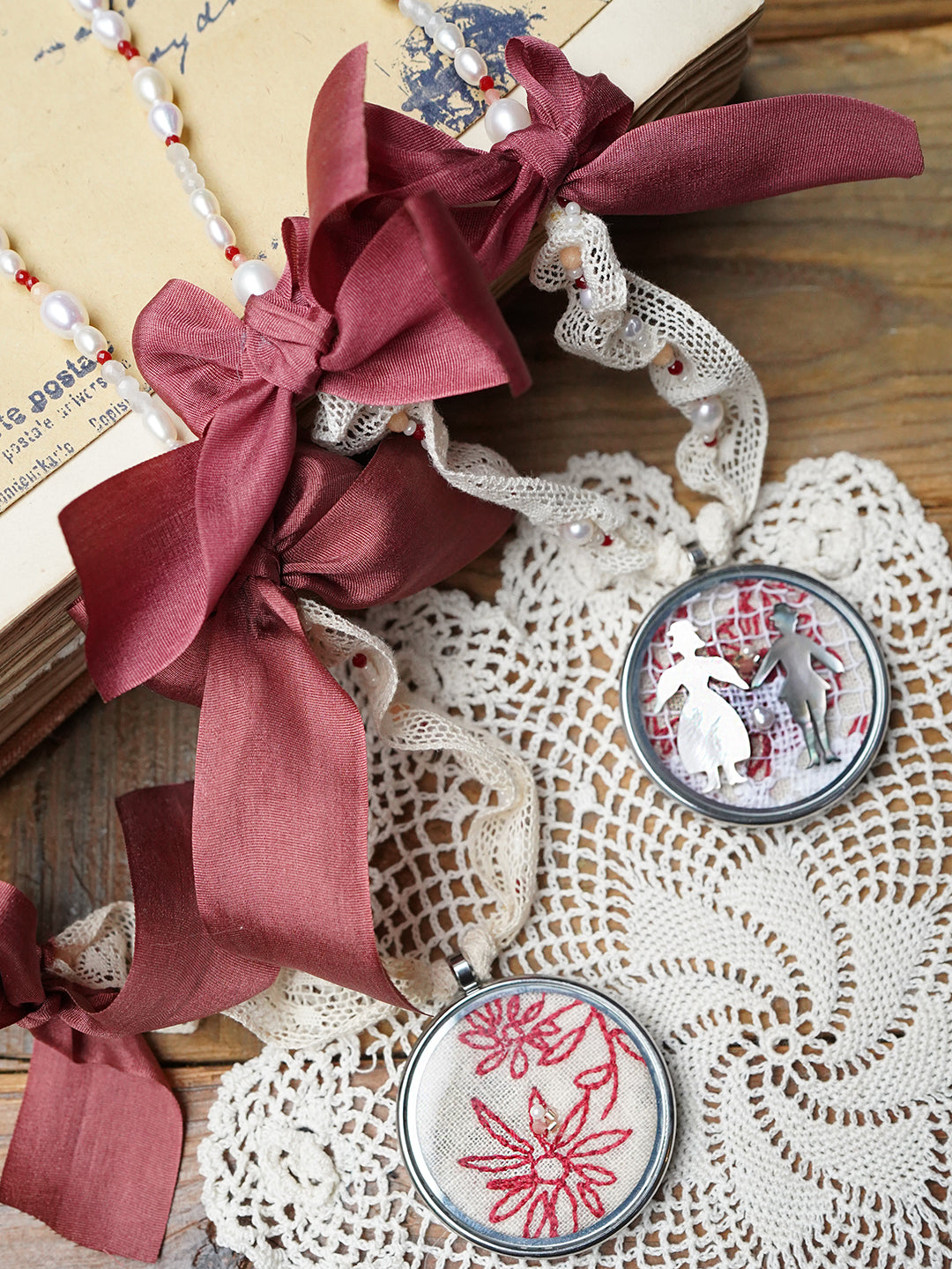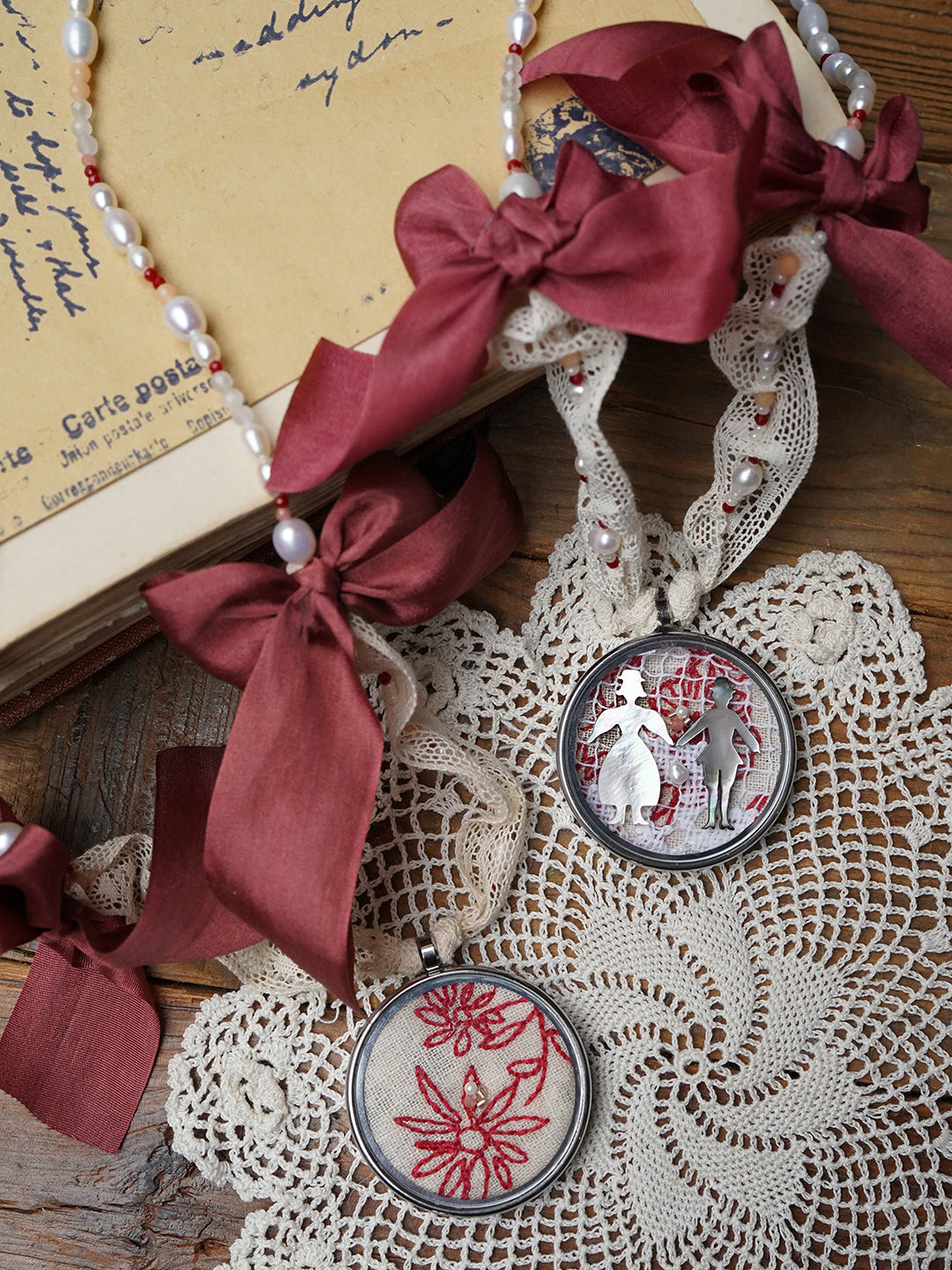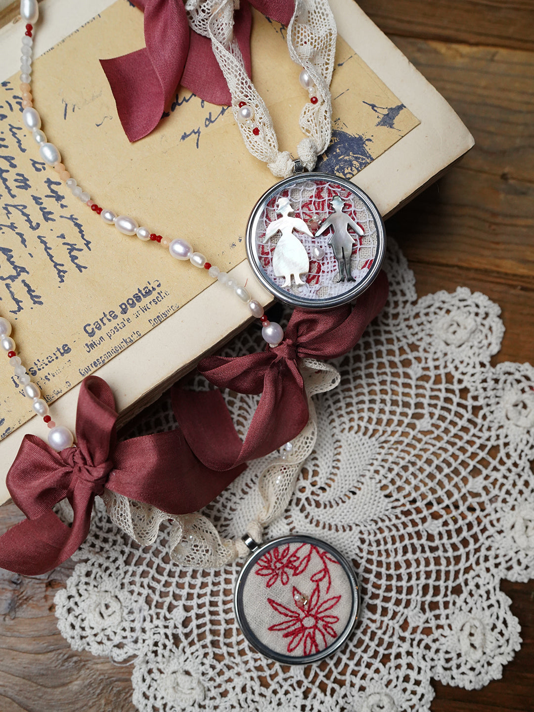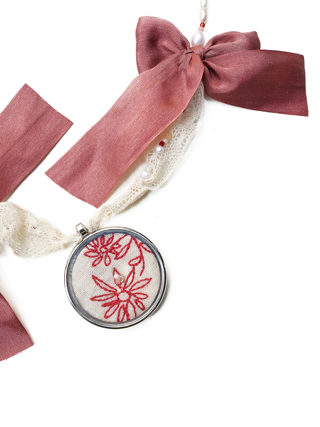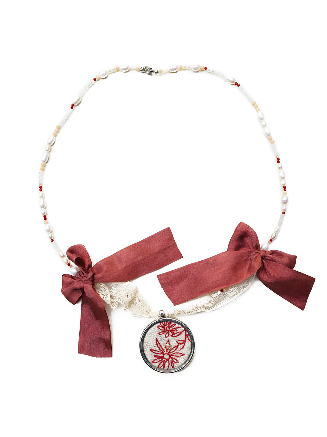 Unlogical Poem Flower Embroidery Handmade Pearl Necklace