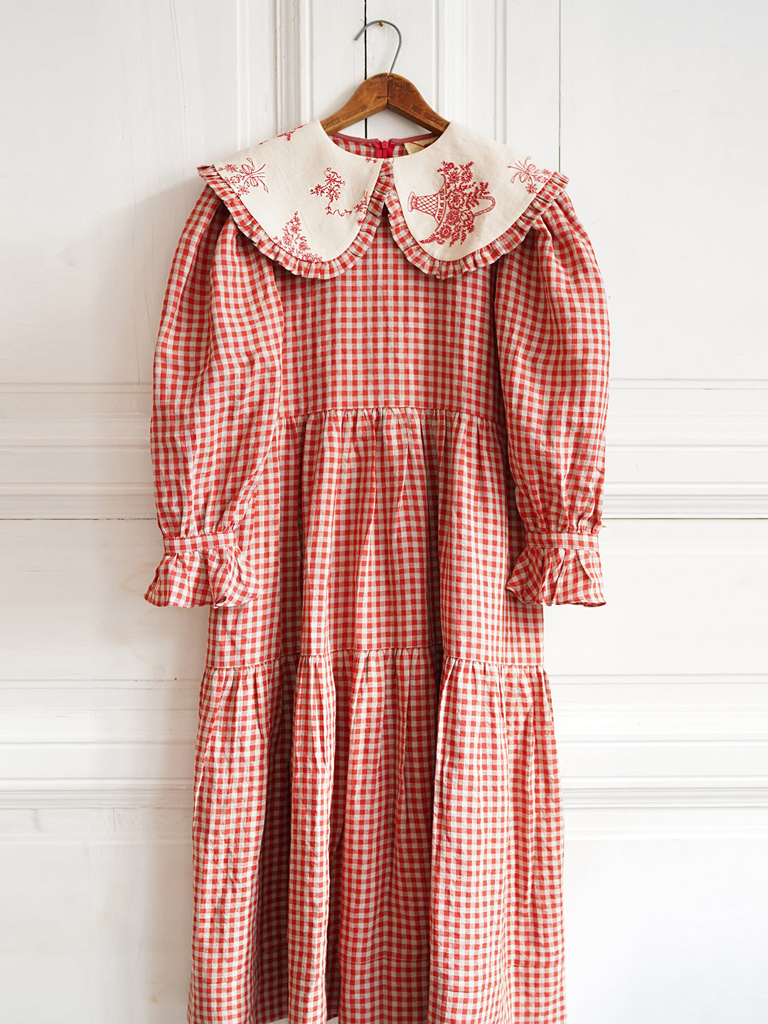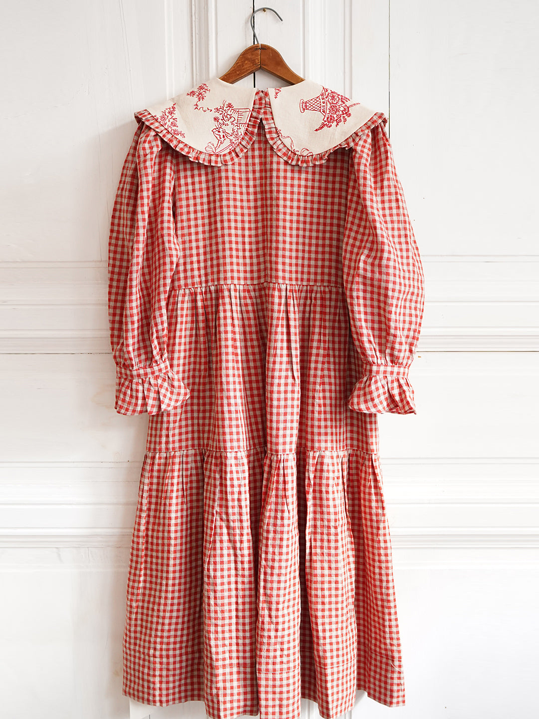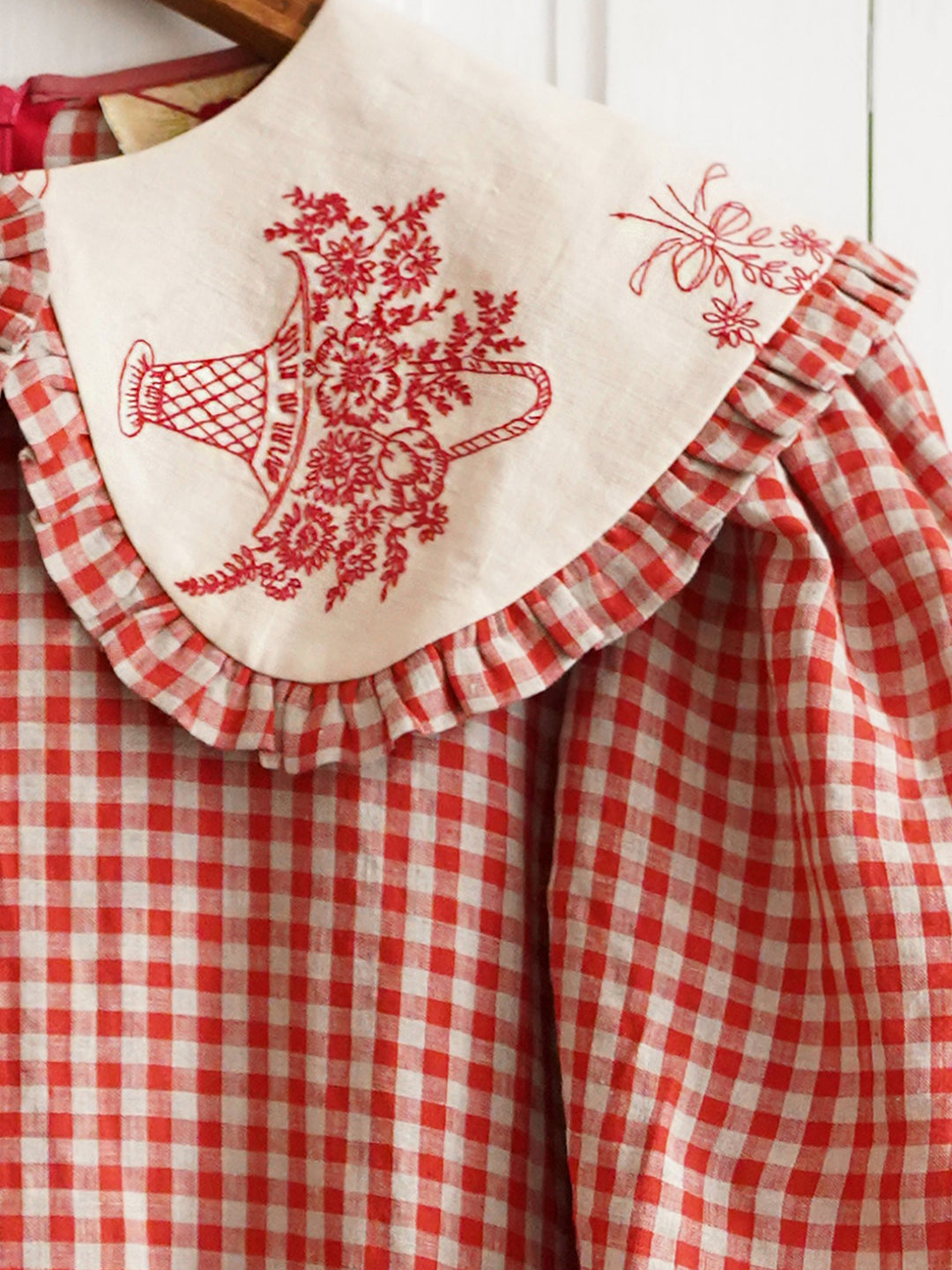 Unlogical Poem Flower Illustration Embroidery Gingham Dress