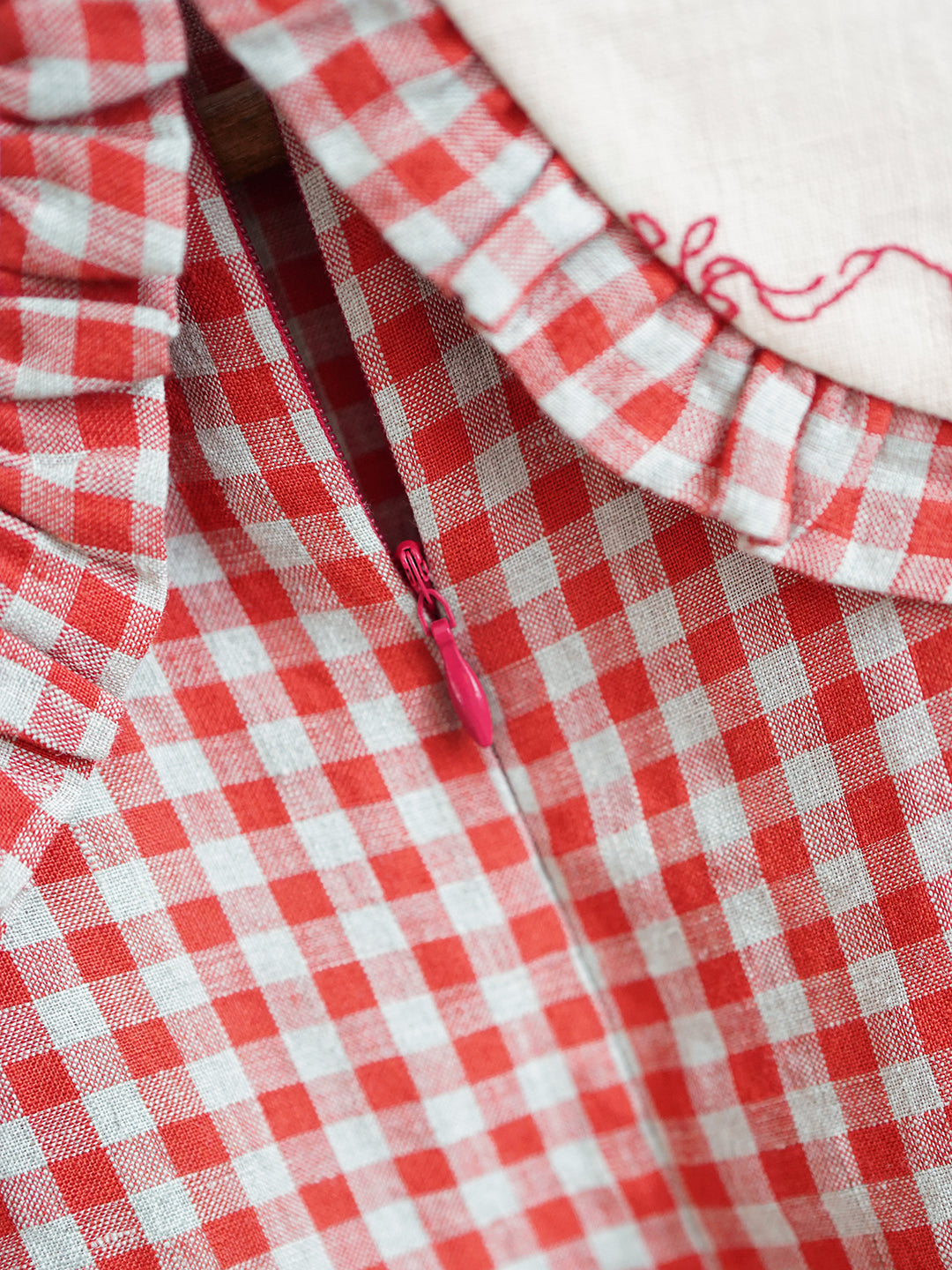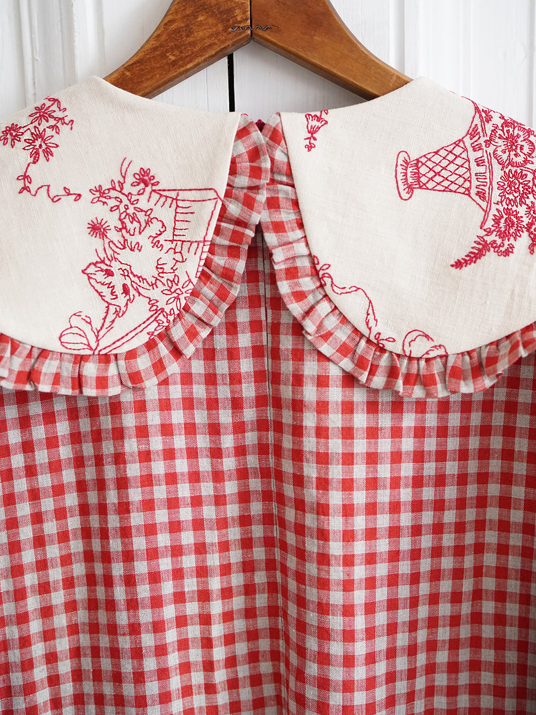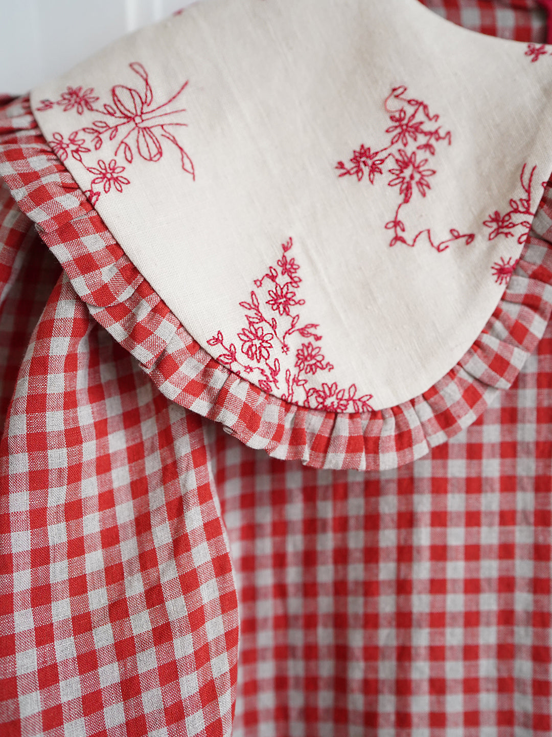 Unlogical Poem Flower Illustration Embroidery Gingham Dress