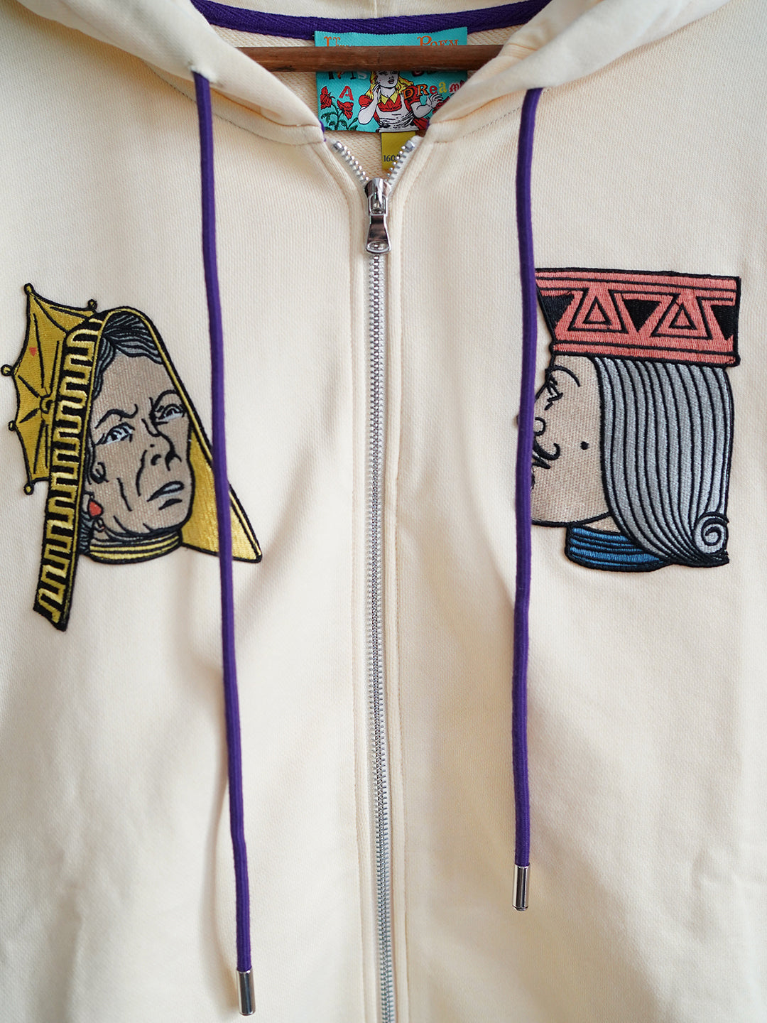 Unlogical Poem Retro-style Poker Embroidery Zip-up Hoodie