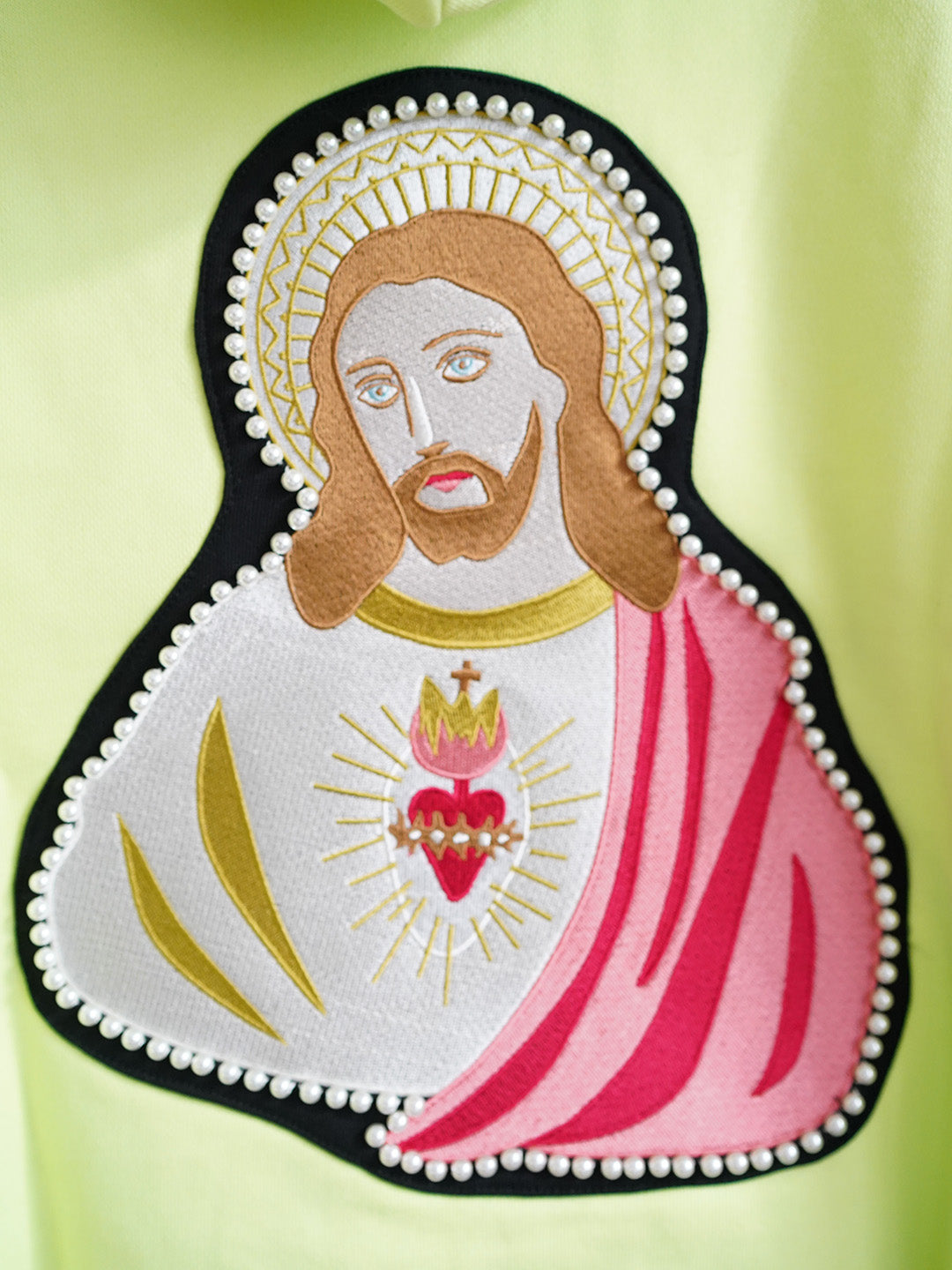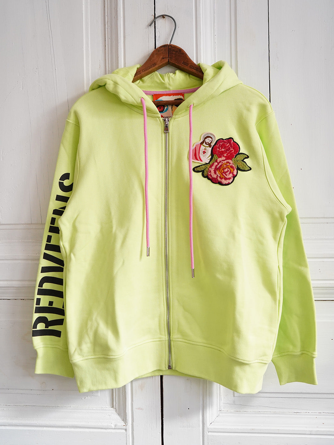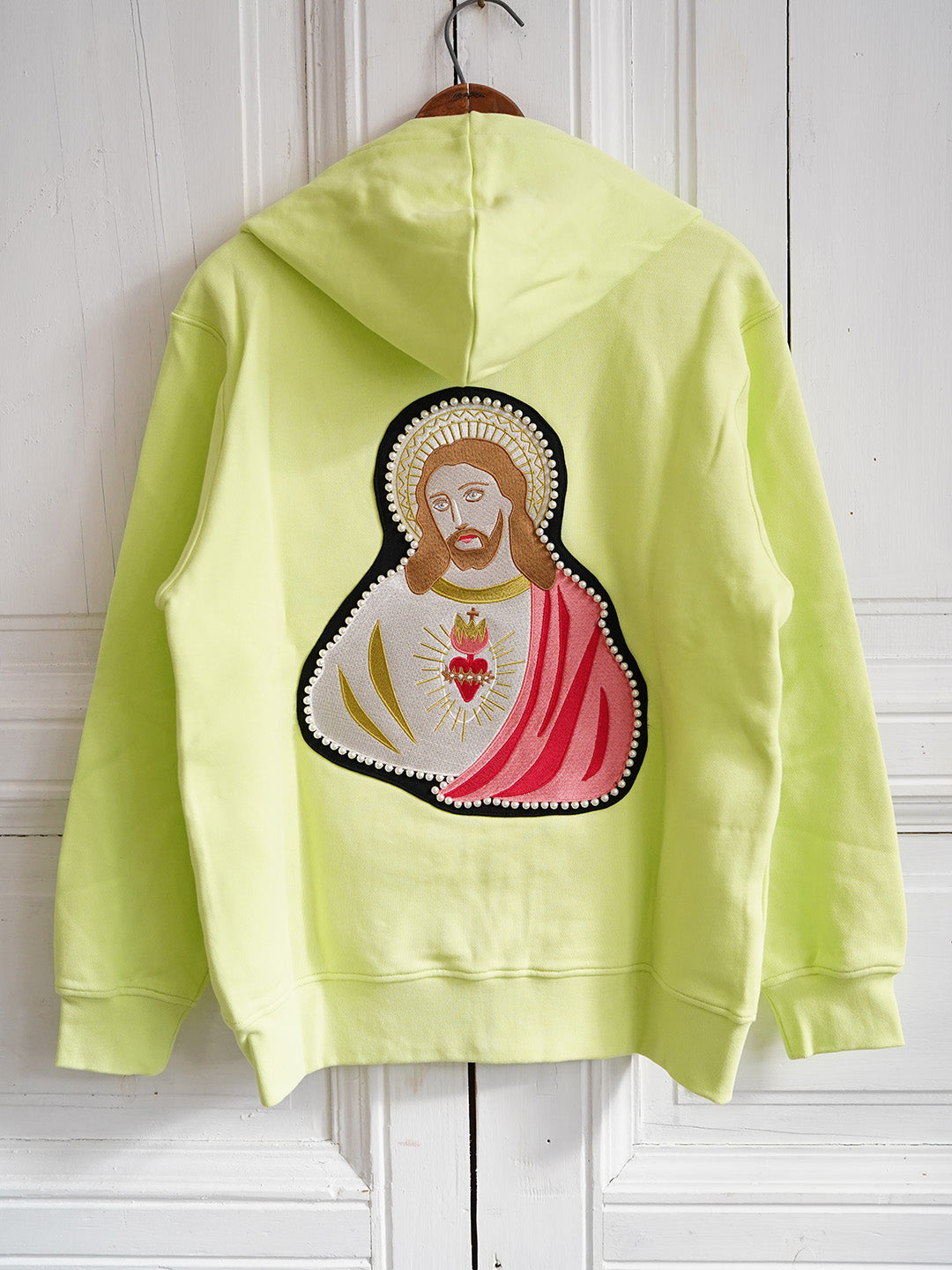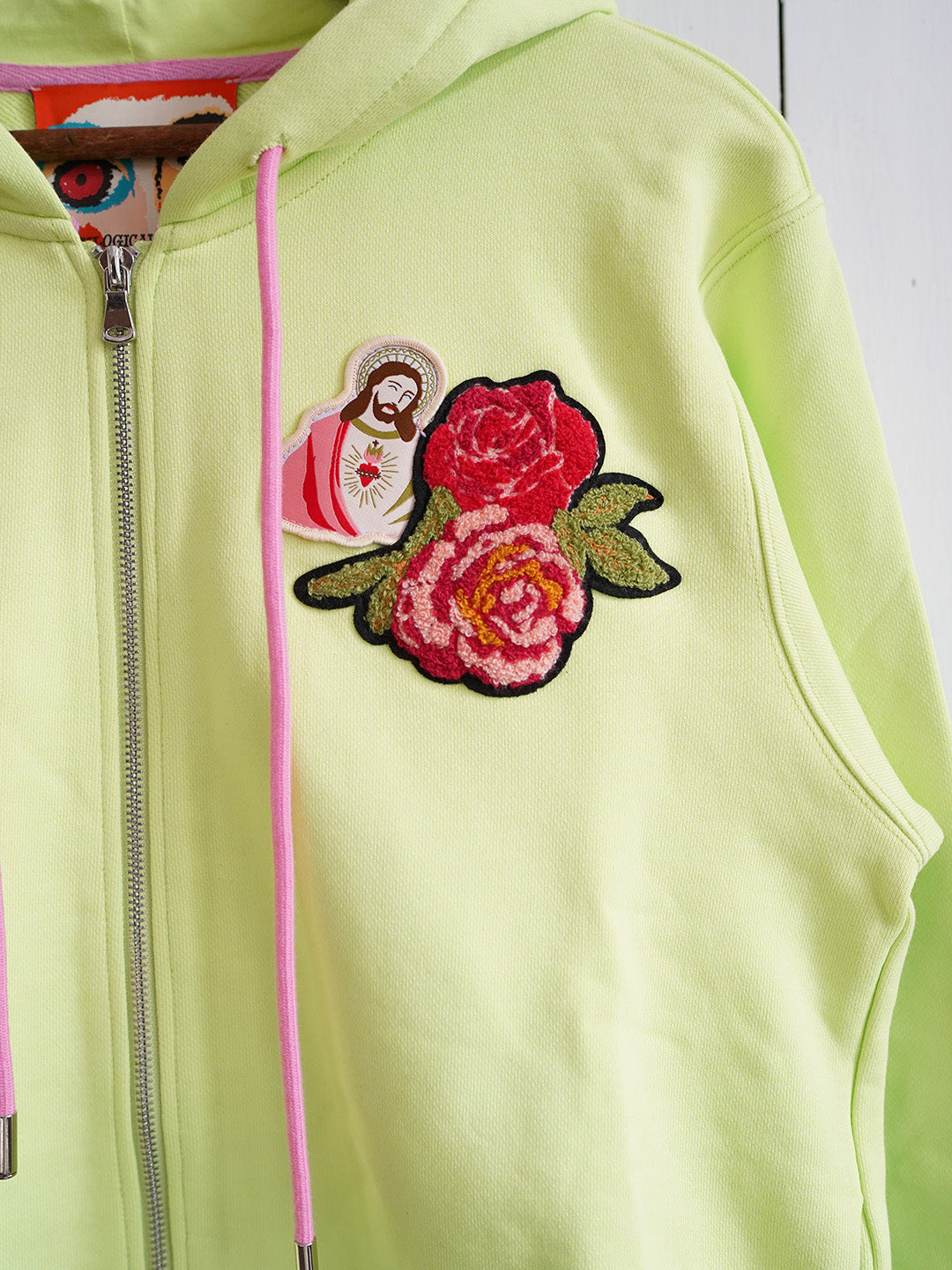 Unlogical Poem Jesus and Rose Embroidery Zip-up Cotton Hoodie